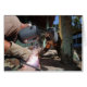 Dieses ist eine Fotografie von zwei Typen, die etwas Metall schweißen.
