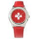 Kinderuhr aus Edelstahl mit rotem Lederarmband
