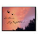 Diese schöne Schwesterfreundschaftskarte nimmt zwei Tauben gefangen, die oben in den Sonnenuntergang fliegen. Der Himmel scheint, auf Feuer mit Wolken in den Regenbogenfarben von Rotem, von Orange, von Gelbem, von Blauem, von Magentarotem und von Lila zu sein. Gerade zeigen die Spitzen der Bäume in der schwarzen Silhouette. Das Innere wiederholt die reizenden Sonnenuntergangfarben mit zwei weiteren Tauben. Der Text liest: Schwestern fliegen zusammen. Er kann leicht besonders angefertigt werden oder entfernt werden.