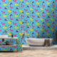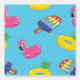 Dekorieren Sie Ihr Poolhaus oder fügen Sie Ihrem nächsten Kunsthandwerksprojekt eine sommerliche Touch mit dieser gemusterten Schale und einem Stock Tapete hinzu. Meine Illustrationen eines Sortiments aufblasbarer Schwimmbecken-Schwimmer in hellen Sommerfarben sind Set vor einem hellen, blau-grün.
