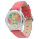 Uhr, Kinderuhr aus Edelstahl mit rosa Lederarmband