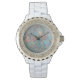 Eine wunderbare Damenuhr mit weißem Armband und grün-weiß-kariertem Ziffernblatt. Trägt sich ganz fabelhaft. Exzellenter Druck, sehr klare Farben. Schönes Design.