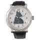 Uhr, Vintage Männeruhr mit schwarzem Lederarmband