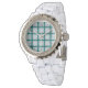 Eine wunderbare Damenuhr mit weißem Armband und grün-weiß-kariertem Ziffernblatt. Trägt sich ganz fabelhaft. Exzellenter Druck, sehr klare Farben. Schönes Design.