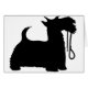 Ein schwarzes Silhouetteprofil eines Scottie, den Hund mit ihm die Leine ist, die in ihm gehalten wird, ist Mund, der hohe und eifrig Schwanz, spazierenzugehen.