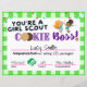 *Dies ist ein Text bearbeitbares Design. Klicken Sie auf Bearbeiten, um den Beispieltext zu ändern, bevor Sie ihn in den Warenkorb aufnehmen.* Erlauben Sie Ihren Girl-Truppenmitgliedern eine greifbare Darstellung ihrer Hingabe und harten Arbeit! Egal ob Sie einen Scout-Cookie-Vertriebspartner organisieren oder außergewöhnliche Scout-Leistungen belohnen möchten, dieses Erfolgszertifikat im Cookie-Vertrieb ist eine reizvolle Ergänzung zu Ihrem Scout-Ideen-Repertoire. Diese Zertifikate erkennen nicht nur hervorragende Leistungen, sondern dienen auch als unvergessliche Geschenke für Truppenmitglieder.
