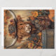 Das Bild zeigt eine Highland Kuh mit einem markanten langen, schaggy Mantel und prominenten Hörnern. Die Kuh ist mit Accessoires im Steampunkstil geschmückt, darunter Zahnräder, Zahnräder und einen Hut mit Brille. Um die Kuh herum sind Herbstelemente wie gefallene Blätter, Kürbisse und etwas, das als Holzfass an der links Seite erscheint. Die Kombination von rustikalen und mechanischen Verzierungen schafft eine faszinierende Gegenüberstellung, die natürliche und industrielle Themen miteinander verbindet. "Steampunk Highland Cow - Eine künstlerische Darstellung einer schattigen Highland-Kuh mit Steampunk-Accessoires inmitten einer Herbstlandschaft. Perfekt für diejenigen, die eine einzigartige Kunstmischung Bio und mechanischer Elemente schätzen." rustikales Industriekulturhochland, Hochlandkuh mit Zahnrädern, Steampunkdektionsideen, Steampunk-Hochlandkuh, Halloween-Steampunk, Rhdesigns decoupage Hygienepapier, Vintage Halloween-Steampunk-Kuh, whimsical Steampunk Design,