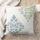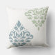 Scroll und Blattstaub in pulverblau und grün auf weißem Hintergrund.
