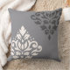 Scroll- und Blattdekorative Damaskus-Gestaltung in Creme und dunkelgraues Detail auf einem kontrastierenden helleren grauen Hintergrund.
