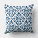 Scroll Damask Lg Ptn Dk Blue auf Weiß Kissen