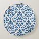 Scroll Damask Lg Ptn Dk Blue auf Weiß Rundes Kissen