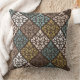 Scroll Damask Rpt Ptn Teals Browns Gold Crm White Kissen