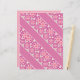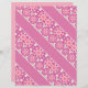 Ein Muster mit geometrischen und blumengeschmückten Motiven wird in Rosa und Weiß gerendert und verleiht dem Design einen zarten Aquarelleffekt. Die Mitte ist ein rosa Streifen, der im gemusterten Layout als Trenner oder Highlight dienen kann.