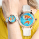 Feines und helles Gesicht der Meeresschildkröte mit Bandfarben. Hier als Kinderuhr gebaut, aber dieses illustrierte, zwei Schildkrötendesign, Set über Meerwasser aus Aquamarine, sieht auch auf einer Damen- oder Herrenuhr gut aus.