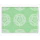 Dieses weiße Mandala sitzt auf einem weichen grünen Hintergrund. Die Farben sind ruhig und kreativ. Teil der Sammlung Jarn Mandala.