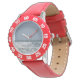 Uhr, Kinderuhr aus Edelstahl mit rosa Lederarmband