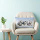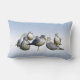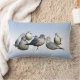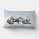 Dieses dekorative Kissen mit sechs grauen und weißen Möwen am Ufer an einem sonnigen Tag. Das Bild wird auf der Rückseite wiederholt.