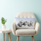 Dieses dekorative Kissen mit sechs grauen und weißen Möwen am Ufer an einem sonnigen Tag. Das Bild wird auf der Rückseite wiederholt.
