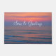 Diese individuelle Türmatte wurde mit einem Bild eines pastellfarbenen Sonnenaufgangs über Corolla Beach an den Außenbänken von North Carolina entworfen. "Seas & Greetings" wird in großen, leicht lesbaren Schriftzeichen hinzugefügt. Die Matte misst 24" x 36" und hat eine glatte Filzfront und einen rutschfesten Latex hinten. Es hat auch eine verstärkte Kante, um dem Ausgraben zu widerstehen, ist sowohl verblassen & mildew resistent, und reinigt leicht mit einem Spray von Wasser. Ideal für überdachte Einstiegsanlagen wie z.B. Veranda, Appartements, Büroräume, Wohnungen, usw. Wenn Sie Fragen zu dieser Matte haben oder mir helfen möchten, dieses Design auf einen anderen Artikel zu übertragen, können Sie mich über Zazzle kontaktieren. Ich helfe Ihnen gerne dabei, das Bild und die Schrift richtig einzustellen.