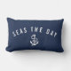 Ahoy! Set segeln mit unserem niedlichen Strand inspiriert werfen Kissen in klassischen nautischen Marine blau und weiß. Das Design zeigt "See the day" in modernen weißen Schriftzeichen gebogen über ein nautisches Seil und Ankerillustrierung.