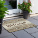 Herzlich willkommen auf Ihrer Zuhause mit dieser matte Türmatte, die eine Vielzahl kleiner Muscheln im Sand des Strandes mit dem Wort "Willkommen" in einem kühnen Schriftart enthält. Oder passen Sie den Text an Ihre eigenen Bedürfnisse an. Wie auch immer, dieses Thema Strand Muscheln Türmatte bringt eine Touch des Meeres auf Ihre Zuhause.