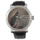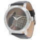 Uhr, Vintage Männeruhr mit schwarzem Lederarmband