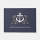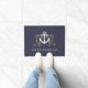 Diese Seeartfußmatte hat einen dunkelblauen Hintergrund, und ein weißer Anker, der durch Gold umgeben wurde, färbte Wirbel. Personifizieren Sie mit Ihrem Namen oder jeder möglicher Mitteilung! Grafiken durch AMBillustrations bei Mygrafico.