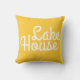 Lake House, dekoratives Kissen wird auf Ihrer Zuhause weg von der Zuhause auf wertvoll. Helles gelbes Kissen mit fett weißem Text.