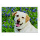Leere Innenseite mit Foto von gelbem Labrador Retriever Hund in den Texas Bluebonnets