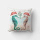 Coastal Thema Weihnachtsbaumwolle werfen Kissen mit einem Aquarell Seepferd Paar am Strand mit Weihnachtsmannmützen und Küssen unter mistletoe. Besuchen Sie meine "Seepferd Coastal Christmas Kiss" Kollektion für die Koordinierung von Einladungen, Party-Vorräten, Dekor und vieles mehr. Kunst von KL Stock.