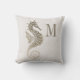 Dekoratorkissen mit goldenem Seepferd/nautischen Design auf cremefarbenem Hintergrund. Personalisiert mit Ihrem Monogramm/Initial.