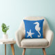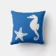 Seepferd und Seestern, weiß auf Kobaltblau Kissen