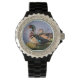 Uhr, Vintage Männeruhr mit schwarzem Lederarmband