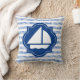 Segel-Boots-Silhouette mit blauen nautischstreifen Kissen