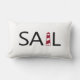 Ein Bootskissen, das "Segel" mit einem Leuchtturm sagt.