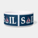 Sail Text Design Illustration mit Segelbootdekoration auf dunkelblauem Hintergrund. Es ist möglich, die Hintergrundfarbe zu ändern und das Design mit Ihrer Wahl zu ergänzen.