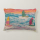 Drei skurrile Segelboote segeln knackige blaue Ozeangewässer vor einem wunderschönen hellen orangefarbenen Himmel, kreiert als gemischtes Medienwerk, um überall in Ihrer Zuhause zu genießen.