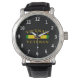 Uhr, Vintage Männeruhr mit schwarzem Lederarmband