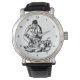 Uhr, Vintage Männeruhr mit schwarzem Lederarmband