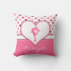 Stellen Sie Skaten Throwkissen in den sehr rosa Polkapunkten mit einem weißen Herz- und Gewohnheitstext dar.