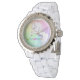 Eine wunderbare Damenuhr mit weißem Armband und grün-weiß-kariertem Ziffernblatt. Trägt sich ganz fabelhaft. Exzellenter Druck, sehr klare Farben. Schönes Design.