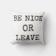 Sei nett oder Verlass Kissen für Zitat. Witzige, niedliche Hausregeln für die Zuhause. Einfach und bis zum Punkt. Weitere Informationen finden Sie unter Zitat Leben. Link unten: