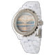 Eine wunderbare Damenuhr mit weißem Armband und grün-weiß-kariertem Ziffernblatt. Trägt sich ganz fabelhaft. Exzellenter Druck, sehr klare Farben. Schönes Design.