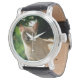 Uhr, Vintage Männeruhr mit schwarzem Lederarmband