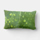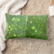 Das Bild auf diesem Lumbarkissen ist ein Originalfoto von ZoeSPEAK von Regentropfen auf einem Schefflerenblatt. Das Foto zeigt die Adern des grünen Federblattes, mit zufälligen Wassertropfen, die es mit hellgelben, dreidimensionalen Highlights schmücken.