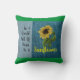 Dieses Sonnenblumendesign macht Spaß und funky mit einem Hauch von lässigen. Das Design zeichnet sich durch einen hellen und dunklen denim Hintergrund mit simulierter Textur aus. Der Text lautet: "IN EINER WELT VOLL VON Rose IST EINE Sonnenblume". Auf der rechten Seite des Kissens befindet sich das Bild einer Sonnenblume. Oben und Unterseite des Kissens haben ein grünes Banner, das Sie mit der Farbe Ihrer Wahl anpassen können.