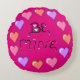 Unsere hübschen Wörter Be Mine with Hearts in rot, rosa und lila verstreut rund um dieses süße runde Kissen. Anpassen, um die Hintergrundfarbe beliebig zu ändern.