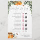 Niedliches Bienenspiel mit grünem, wasserfarbenem Blattwerk, einem Honigglas und winzigen Illustrationen für Honigbienen. Personalisieren Sie mit der Braut, um den Namen und Baby-Dusche Datum am unteren Rand. Das Spiel "He Said, She Said" veranlasst die Gäste, zwischen Braut und Bräutigam (oder beidem!) mit 14 individuell anpassbaren Hinweisen zu entscheiden.