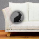 Dieses runde Akzent Kissen hat das Seitenprofil eines sitzenden schwarzen Kaninchens auf einem hübschen marmorierten, grauen Hintergrund auf beiden Seiten.