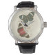 Sepia Blätter mit bunten Schmetterlingen Armbanduhr